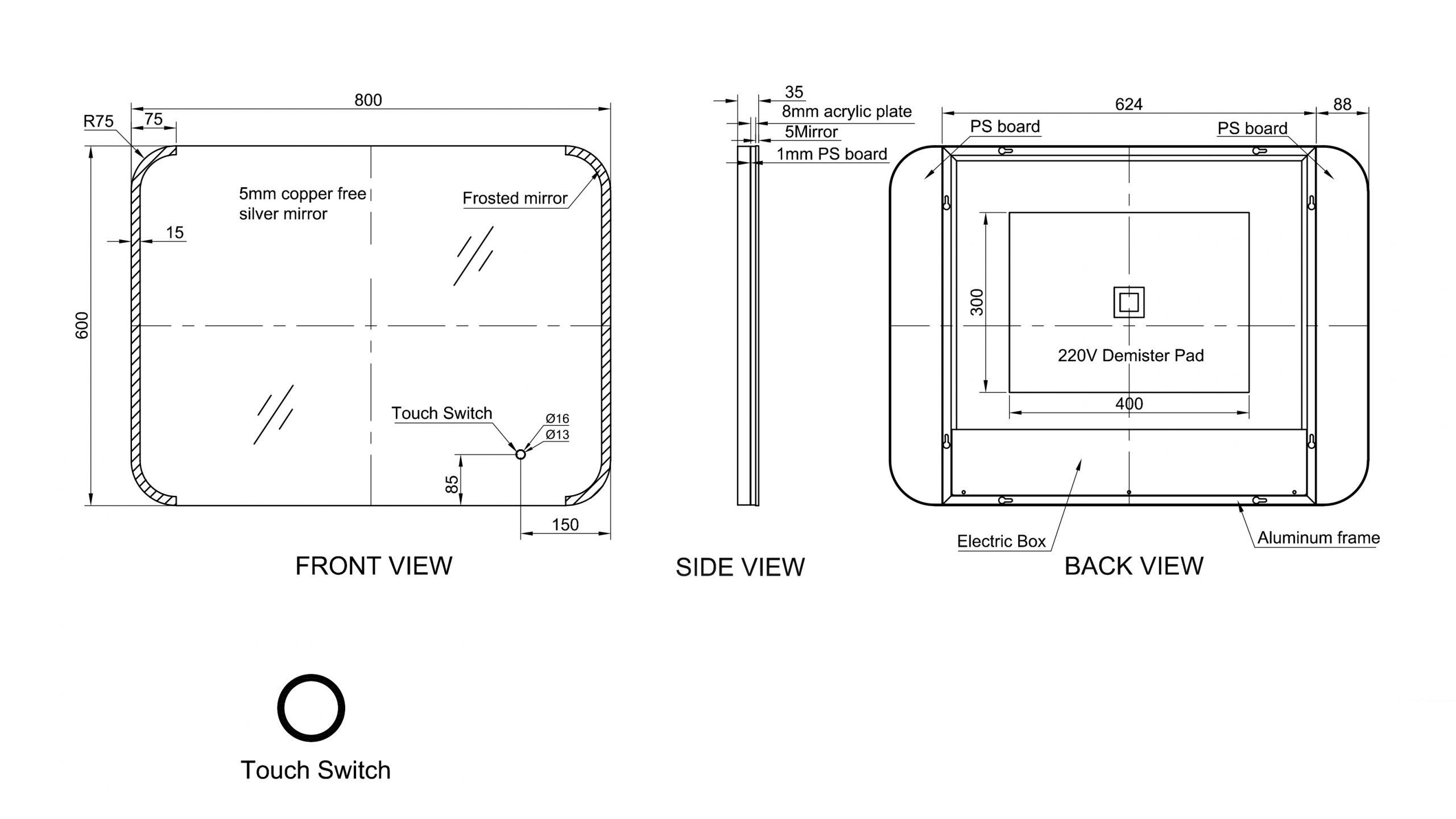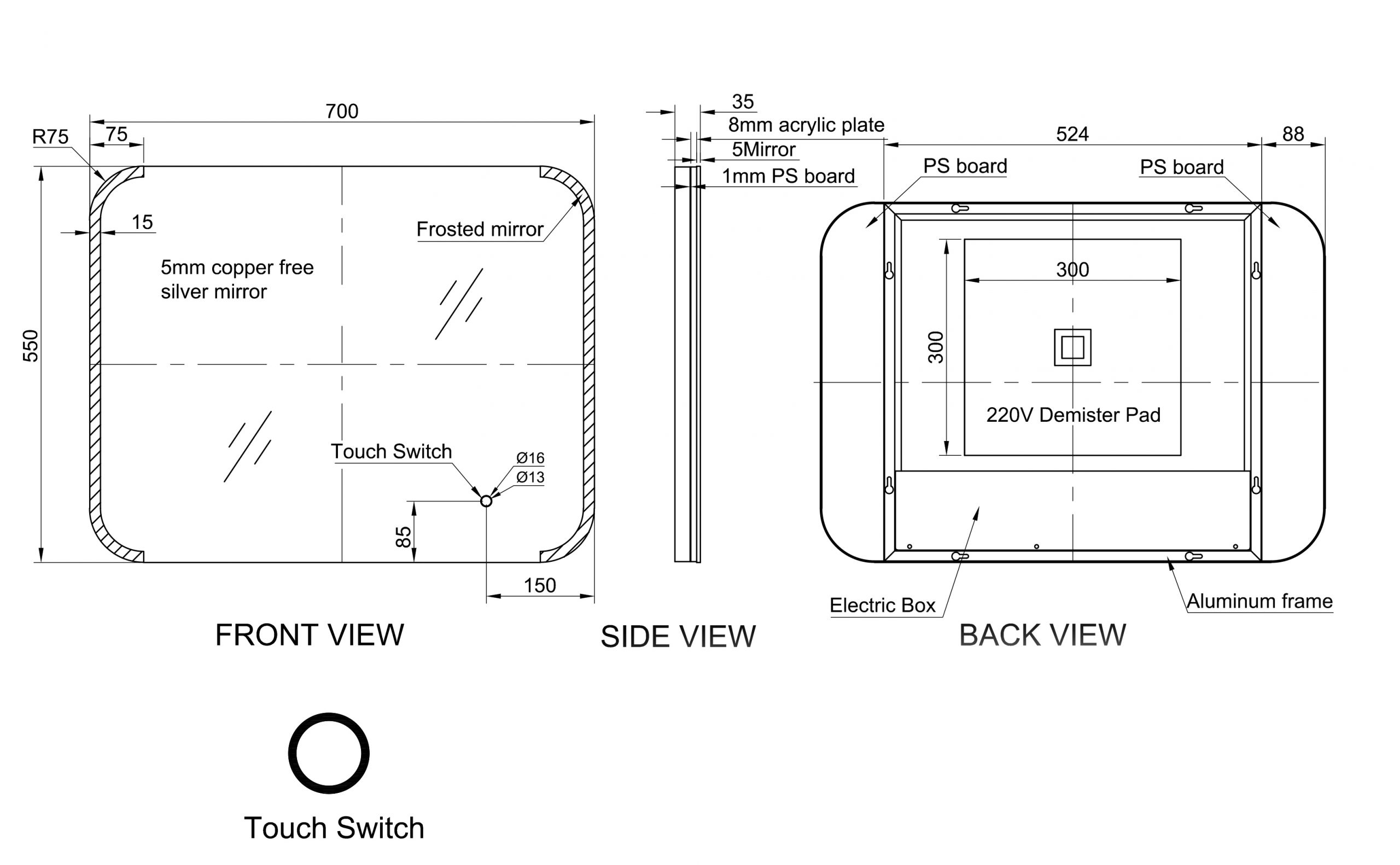 | Size | 500mm x 700mm – GIA-MIR005, 600mm x 800mm – GIA-MIR006 |