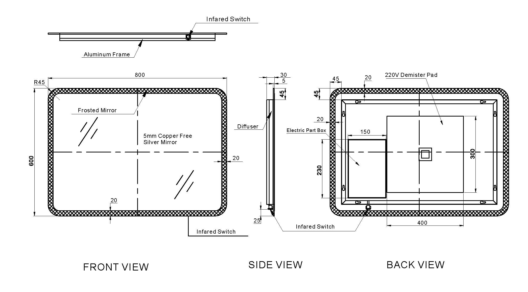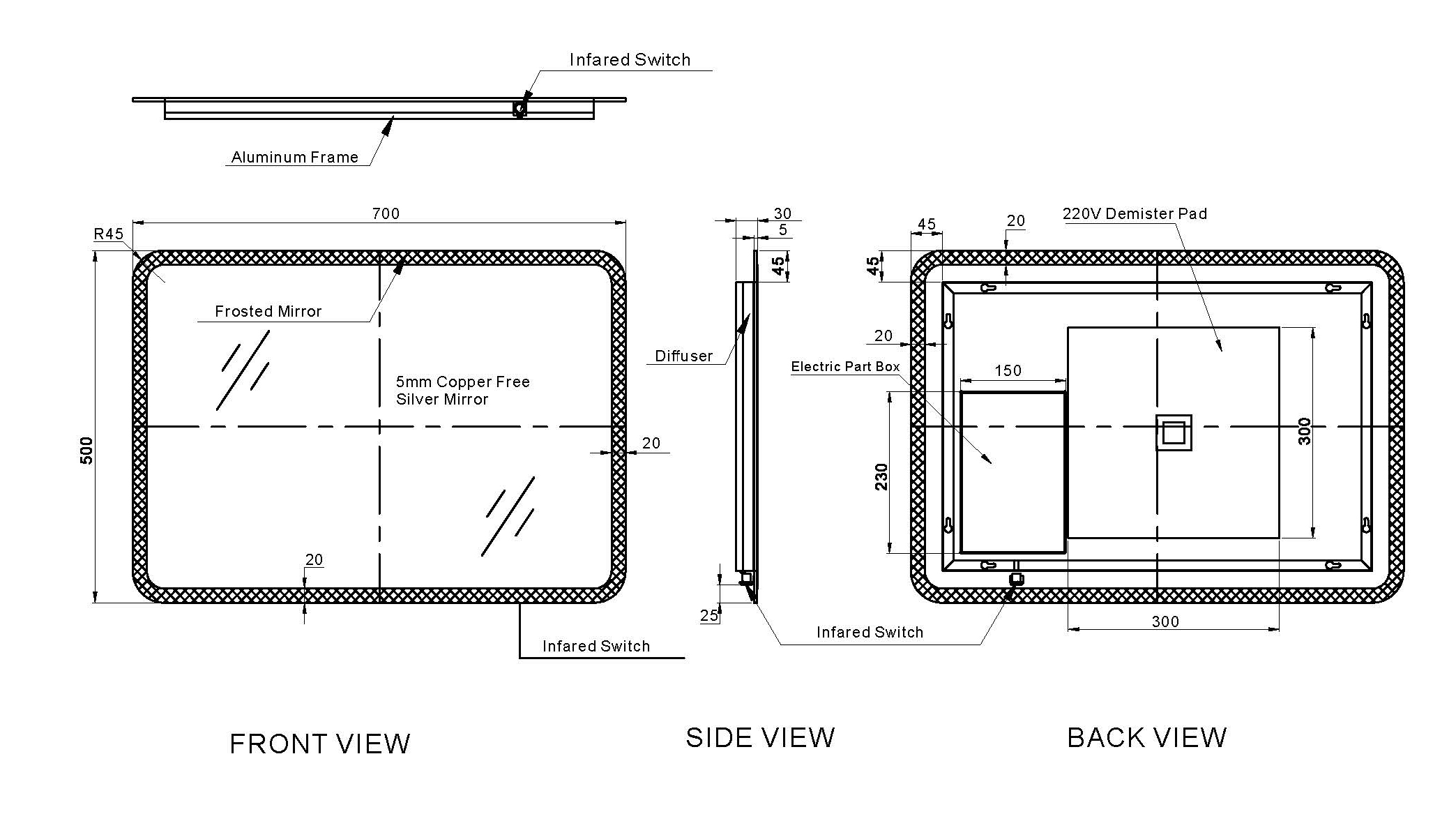 | Size | 500mm x 700mm – GIA-MIR003, 600mm x 800mm – GIA-MIR004 |