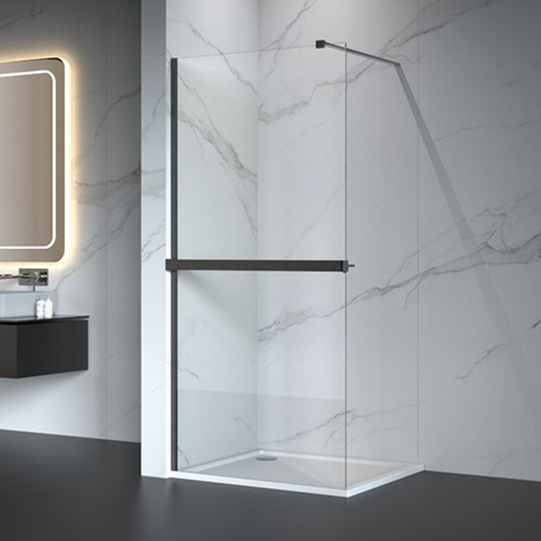 Enhance your wet room with our Matt Black Grid 8mm Easy-Clean Shower Glass Return Panel. Sleek design and easy to maintain.